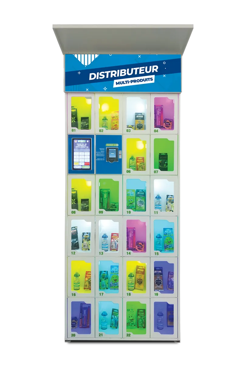Un concept unique regroupant paiement, distribution de jetons, gonfleur, aspirateur, vente de produits et café.