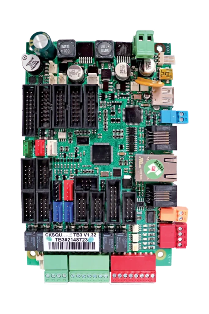 Utilisée sur de nombreux produits CKSQUARE, la carte TB03 dispose de nombreuses fonctionnalités intégrées. Elle permet de piloter un portique de lavage, distribuer des jetons/cartes et proposer le rechargement en libre service. 8 boutons lumineux de sélection, 8 commandes relais contacts secs et 6 retours 24VDC indépendants. Gestion des afficheurs CCTLAK et tactiles 10.4″ et 15″. Gestion terminal Ingenico et gestion MDB Cashless et terminal MDB. Gestion d’une imprimante thermique. Application de gestion à distance (configurez, pilotez depuis son interface web !).